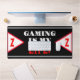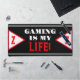 Cooles geometrisches Muster Video-Gamer-Thema mit Monogram Initial in roter Typografie auf beiden Seiten in rot-weißen Dreiecken. Gaming ist mein Leben in coolem, weißem und rotem Schriftart geschrieben. Schwarzer Hintergrund mit silbernen Streifen. Spaß für den Videospieler aller Altersgruppen. Original Design von TamiraZDesign.