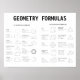 Postergrösse Liste geometrischer Formeln mit Kreisen, Quadraten, Dreiecken, Ellipsen, Kreisen, Parallelogramm, Annulus, Trapezoid, Polygon, Würfel, Kegel, Pyramiden, Kugel, Torus, Tetraeder.