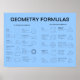 Postergrösse Liste geometrischer Formeln mit Kreisen, Quadraten, Dreiecken, Ellipsen, Kreisen, Parallelogramm, Annulus, Trapezoid, Polygon, Würfel, Kegel, Pyramiden, Kugel, Torus, Tetraeder.