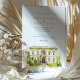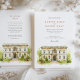 Erleben Sie Ihren besonderen Tag mit dieser anspruchsvollen Hochzeitseinladung in Aquarellfarben mit der prächtigen George Peabody Library in Baltimore. Das Kunstwerk vereint wunderbar die klassische Architektur dieses berühmten Ortes, der in sanften, warmen Cremes und Beige gehalten ist. Die Szene ist elegant gerahmt von stilisierten hellgrünen Bäumen, einigen mit zarten gelblich-grünen Blätter und gepflegten grünen Wiesen. Details wie die klassischen schwarzen Lampenschirme, eine prominente Terrakotta-Gartenbrunnen und der einladende Weg verleihen dem Hotel seinen Charme. Diese Einladung mit seinem raffinierten Aquarellstil erinnert an eine zeitlose Eleganz und literarische Romantik, die sich perfekt für eine ausgezeichnete Feier eignet. Die Vorderseite präsentiert Ihre Hochzeitsdetails mit klassischer Typografie, während auf der Rückseite die "Finer Details" für weitere Gästebuchsinformationen angezeigt werden. Die Farbpalette umfasst prächtige Cremes, sanfte Beige, eine Vielfalt an frischen Grüntönen, gelbgrüne Farbtupfer im Blätterdach, klassisch schwarz und warme Terrakotta.