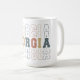 Das Wort Georgia in gedämpften Farben auf weißem Hintergrund.