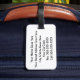 Gepäckanhänger in blau. Sie können das Gepäckanhänger mit Ihren eigenen Informationen (füllen Sie einfach die Felder aus) und Ihr gesamtes Set anpassen.
