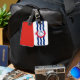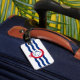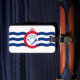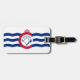 Gepäckanhänger mit der Flagge der Stadt Cincinnati, Ohio; weiße Flagge mit drei blauen Wellen und rotem „C“ in der Mitte