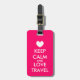 Rosa Behielt Ruhe und Liebe Reisegepäck Tag mit Herz Funny Travel Anhänger für Taschen und Koffer. Individuell anpassbares Vintages Slogan Design für Reisende. Heiß rosa oder eine beliebige Farbe. Erstellen Sie Ihre eigene lustige Behalt Ruhe und führen Sie Parodie weiter. Hintergrundfarbe und Text können geändert werden. Ich habe Herzdesign.