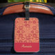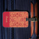 Gepäckanhänger mit rotem und orangefarbenem Muster