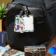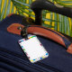 Gepäckanhänger mit spanischem Monats-Kreuzworträtsel-Entwurf. Front hat weißen Raum für Name und Anschriftinfo. Spanische Wörter für die Monate. Bunt, Spaß, groß für Reisende und Kreuzworträtselliebhaber und spanische Sprachliebhaber.