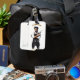Barber-Theme Gepäckanhänger Dieses einzigartige Gepäckanhänger-Anhänger ist für Friseure, Friseurinnen und Grooming-Liebhaber konzipiert, die ihre Leidenschaft für das Barbergen in jede Reise gewollt haben! Gestaltungsmerkmale: Die Rückseite jeder Karte zeichnet sich durch das fett- und stilvolle Detailbild eines coolen, ansehnlichen Barbiers vor einem knalligen, weißen Hintergrund aus. Er trägt eine stilvolle Schürze mit einer Schere und zwei verschiedenen Kämmen in der Hosentasche, was eine selbstbewusste Pose ergibt. In seinen Händen hält er einen Haartrockner wie eine Pistole in der einen Hand und einen Kamm wie eine andere Waffe in der anderen, was seinen kühlen, edgischen Stil verstärkt. Über dem Bild, in fett gedruckter, auffälliger Typografie, wird die Phrase "Ich bin ein BarberSter!" gedruckt, die "Barber" und "Gangster" zu einer einzigartigen Erklärung von Stil und Beruf vermischt. Der Text ist mit einem scharfen, modernen Schriftart entworfen worden, wodurch er sich durch die Ergänzung des unten stehenden Bildes hervorhebt.