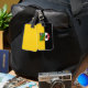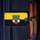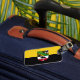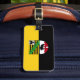 Gepäckanhänger mit variantenreicher Flagge Sachsen-Anhalts; Design mit zwei waagerechten gelben (goldenen) und schwarzen Streifen und mit dem Wappen des Staat in der Mitte