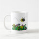 bunte Cartoonbiene flys über einem hellen Flecken der Blumen