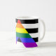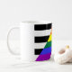 Der v-Regenbogen stellt das A im Wortaktivismus dar, und die Regenbogenfarben stellen die Gay Prideflagge dar. Die Schwarzweiss-Streifen stellen Heterosexualität dar.