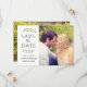 Die Dattelkarte ist mit einem Blattwerk aus grünen, wasserfarbenen Ästen mit Blätter versehen, das dieses naturlich inspirierte Typografie-Design unterstreicht. Ideal für einen Frühlings- oder Sommeraufenthalt. Enthält ein Porträt-Foto auf der Vorderseite und Landschaft Foto auf der Rückseite.