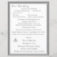 Das Design zeigt Ihren Text in einem eleganten, silbernen Schriftart in einem silberfarbenen Rahmen. Text folgt dem richtigen Format für eine katholische Hochzeit. Sehr elegant. Entworfen, um sich mit der Gerahmten katholischen Bibelverse Hochzeitssuite abzustimmen.