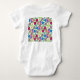 Geranium Blume Baby Bodysuit. Spaß und niedliches Design mit blauem Hintergrund. Design auf Vorder- und Rückseite,