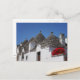 Geranium-Blume und Trulli-Häuser in Alberobello Postkarte