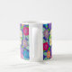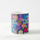 Mug de café à fleur de géranium. Fleurs de géranium peintes à la main sur une tasse à café avec un arrière - plan bleu. Partie d'un ensemble de quatre. Collection de géranium