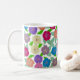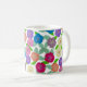 Géranium Flower Coffee Mug avec arrière - plan blanc. L'oeuvre originale de ce dessin a été dessinée à la main et peinte à l'aide de peinture acrylique. Cette tasse fait partie d'une collection avec cinq autres arrière - plans colorés disponibles.