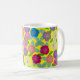 Géranium Flower Coffee Mug avec arrière - plan jaune vif. Fleurs de géranium dessinées et peintes à la main incorporées dans ce design lumineux et amusant.