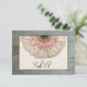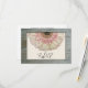 Ein Hochzeitsraster mit einem Bild von Barnwood, das die Vorderseite mit einem Bild von einem rosa und von weißem gerbera daisy pieking von der Spitze des Rechtecks in der Mitte. Personalisieren Sie den Text vorne und hinten.