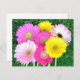 Ein Bild von gelben und rosa Gerbera dunklen Farben. Der Name für das Foto stammt von den 7 Gängen, die so aussehen, als würden sie sich für ein Team posieren. Ich legte die Gänseblümchen auf das Gras.