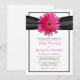 Gerbera rose avec invitation au ruban satiné noir