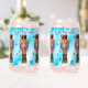 Ein traditioneller deutscher Holzfußkrecker, der einen Offizier mit einer blauen und orangefarbenen Uniform darstellt. Der Nutcracker wird auf einem blauen Hintergrund mit Schneeflocken überlagert. Auch der spanische Text "Feliz Navidad" (Frohe Weihnachten) erscheint. Passen Sie Ihren eigenen Text auf der Rückseite an.