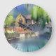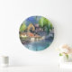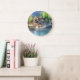 Die künstlerische Wanduhr besticht durch eine von der künstlerischen Intelligenz erzeugte digitale Aquarellszene eines bezaubernden deutschen Dorfes am Fluss.