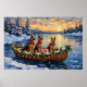 German Shepherd Christmas Boat Holiday Poster