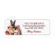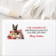Ein wunderschöner deutscher Schäferhund, der auf einem Stapel von Weihnachtsgeschenken in Rot und Weiß liegt, ist an den links auf diesen Rücksendeadressen-Aufklebern. Ihr eigener Text ist rechts rot und schwarz. Es gibt auch ein zusätzliches Textfeld für Ihren saisonalen Gruß in rot.