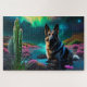 GSD auf einem Alien-Planeten, umgeben von seltsamen Pflanze und farbenfrohen Himmel über KI Art von minx267