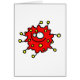 Caricature mignonne de germe bactérien rouge sur une carte de voeux.