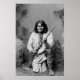 Dieses Native American Geschichtsportrait zeigt Geronimo, den berühmten Apache-Medizinstudenten, der 1886 ein Gewehr hielt, als er kniete.