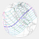 Pfad der totalen Sonnenfinsternis vom 8. April 2024, dargestellt auf einer globalen Karte der NASA, die die Zeiten des Transits und den Punkt der besten Sonnenfinsternis zeigt. Der enge Totalweg für Nordamerika beginnt an der Pazifikgrenze Mexikos und führt durch den Nordosten von Texas und den Mittleren Westen der Staaten. Er endet an der Atlantikgrenze von Maine.