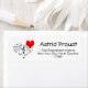 Große Silhouette von Noten und Klappen in Herzform, ein kleines Bild eines roten Herzens hinter den schwarzen Noten. Vorlagenname und -adresse rechts neben dem Bild. Einmaliges romantisches Backadresse-Label. Sie können alles ändern und löschen. Nutzen Sie die Schaltfläche Anpassen, um das Design Ihren Bedürfnissen anzupassen.