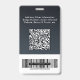 Erstellen Sie mit diesem maßgeschneiderten Mitarbeiterfotoausweis ein poliertes und professionelles Erscheinungsbild, das für eine klare Identifizierung und modernes Branding konzipiert ist. Dieses Ausweisschild verfügt über einen dunkelblauen bis schwarzen Farbverlaufshintergrund, Ihr Geschäft-Logo, einen dedizierten Foto-Bereich, eine fettschriftliche Namensanzeige und einen anpassbaren Jobtitel für eine einfache Erkennung. Das strukturierte Design sorgt dafür, dass Ihr Team in jedem Arbeitsumfeld organisiert und professionell aussieht. Die Rückseite enthält einen großen QR-Code und einen Barcode-Bereich, wodurch es ideal für Zugangskontrolle, Check-ins, Inventarsysteme oder digitale Informationsweitergabe ist. Perfekt für Corporate Offices, kleine Unternehmen, Einzelhandel und kundenorientierte Teams, Gesundheits- und Bildungspersonal, Veranstaltungen, Konferenzen und Sicherheitspersonal.