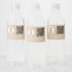 Eine moderne minimalistische beige personalisierte Wasserflaschen-Etikette für Unternehmen mit Geschäftslogo, Text, Website und QR-Code. Personalisieren Sie mit Ihrem Logo, QR-Code und Details, um Ihr eigenes Design zu erstellen.