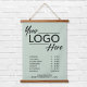 Moderne und berufliche Wandaufhängung für Ihr Unternehmen mit Logo, Geschäftszeiten, Telefonnummer und Website. Die Farben des Hintergrunds und des Textes können durch Editieren im Designwerkzeug auf Ihre Markenfarben geändert werden.