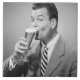 Geschäftsmann in trinkendem Bier des vollen Anzugs im Studio, (B&W), Porträt | George Kennzeichen | AssetID: 57520681