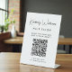 Chic Custom Tischschild für Ihr Unternehmen mit Ihrem Namen in einem stilvollen Signatur-Skript und Geschäftstyp unten in einfacher moderner Schrift gezeigt. Geben Sie Ihre Website-Adresse ein, um einen QR-Code zu erstellen, den Kunden und Kunden nach Terminen, Produkten, Dienstleistungen, Stunden usw. durchsuchen können.