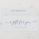 Einfach und elegant minimalistisch Script blau graue Geschenkgutschein. Dieses elegante Script-Geschenkzertifikat passt perfekt in einen Standard-Geschäftsbereich #10. Ideal für Ihre Marke und Ihr Geschäft.