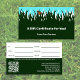 Das Geschenkgutachten der Lawn Care Service Company zeichnet sich durch eine schicke Rasenfläche-Silhouette im komfortablen 3,5" x 2"-Landschaftsformat aus. Die Vordertafel zeigt in einem modernen serifenlosen Schriftart "Ein Geschenkgutschein für Sie", zusammen mit Platz für Ihren Rasenpflege-Firmennamen und verleiht ihm ein poliertes und berufliches Aussehen. Die Rückseite ist sorgfältig mit anpassbaren Feldern für den Namen des Empfängers, den Namen des Absenders, den Wert, das Ablaufdatum und den Emittenten sowie einem für den Tracking Code Ihres Unternehmens vorgesehenen Bereich organisiert. Unter diesen Feldern gibt es genug Spielraum für die Bedingungen, um Klarheit zu gewährleisten. Für den links bietet ein QR-Code mit einem Aufruf zum Handeln -"Nach Datum suchen!" - den Empfängern einen einfachen Zugang zu wichtigen Details. Die rechte Seite ist für Ihre wesentlichen Geschäftsinformationen reserviert, einschließlich Ihrer Website, E-Mail, Telefonnummer und körperlichen Adresse. Dieses Geschenkgutschein ist ein vielseitiges Marketing-Tool, das sich ideal für kleine Dienstleistungsunternehmen eignet. Passen Sie den Text einfach an, indem Sie ihn ersetzen. QR-Codedetails stimmen perfekt mit Ihrer Marke überein. Weitere Inspirationen zum Thema Branding und Offline Business Marketing finden Sie unter www.KBMD3signs.com. Sollten Sie Hilfe bei der Personalisierung benötigen oder Fragen haben, kontaktieren Sie uns unter info@KBMD3signs.com.