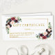 Das moderne elegante Geschenkgutschein "Floral" beinhaltet bordeauxfarbene Rose, rote Blume, rosa Rosen, blaue Blumen und Grünpflanzen - Goldrahmen und Goldtext
