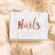 Ein modernes, stilvolles Geschenkgutschein Nails KünstlerVisitenkarte mit moderner Pinseltypografie in Handschrift in Imitaten Rose Goldfolie auf einem angesagten und eleganten Marmorhintergrund. Wenn Sie eine Anpassung benötigen, zögern Sie nicht, mich zu kontaktieren