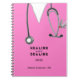 Nurse notebook featuring pink nursing scrubs, Stethoskop, and nurse apprequote To personalize edit text to add name and year.