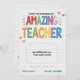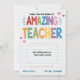 Mit dieser bezaubernden "Phantastisch Teacher"-Wertkarte bedanken Sie sich herzlich und fröhlich! Diese flache Ferienkarte mit farbenfrohen Regenbogenbriefen auf einem Notizbuch-Hintergrund eignet sich perfekt für das Ende des Schuljahres, die Lehrer Appreciation Week oder einfach nur weil. Personalisiert mit Ihrem Namen und dem Ihres Lehrers, ist es ein herzlicher Weg für Schüler, Dankbarkeit für all die harte Arbeit, Ermutigung und Unterstützung zu bekunden, die sie im Unterricht erhalten. Ideal für Grundschulkinder, Familien, die eine Schule besuchen, oder für jeden, der will, einen wirklich phantastischen Lehrer zu feiern. Enthält Platz für Ihre eigene benutzerdefinierte Nachricht und wird mit einem passenden Umschlag geliefert.