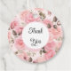 Dieses Geschenketikett wird in runder Form mit einem hübschen rosa rosa Blumendruck gezeigt. Text: Vielen Dank, dass Sie diesen Artikel anpassen oder kaufen, wie es ist.