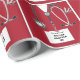 Kreative Medizin-Abschluss Geschenkpackung und Party-Dekoration mit roten Klinikschalen, Stethoskop und lustigen Schweizer Armeemesser. Bearbeiten Sie Text, um den Namen des Arztes hinzuzufügen oder anderweitig anzupassen.