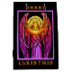 Ein dramatischer Buntglasengel, in lebhaften Juwelenfarben mit einem goldenen Heiligenschein, der den Beginn von Weihnachten ankündigt.