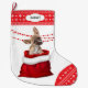 Die Vorderseite dieses Holiday Strumpfs zeigt ein Bild eines bezaubernden braunen Chihuahua-Welpen, der aus einem rot-weißen Weihnachtsgeschenksack guckt. Hinter dem Hund befindet sich eine rot beattelte Garage. Zehe und obere Grenze sind ein rotes und weißes Schneeflockenmuster. An der oberen Grenze befindet sich ein weißes Etikett mit dem eigenen Text in dunkelgrau. Die Rückseite des Strumpfs ist das gleiche rote und weiße Schneeflockenmuster.