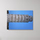 Diese fesselnde Fotografie zeigt den ikonischen Schiefen Turm von Pisa, der elegant vor einem tiefblauen Himmel während der Abenddämmerung in Pisa steht. Der historische Marmorturm, berühmt für seine unverwechselbare Neigung, ist wunderschön beleuchtet und hebt seine kunstvollen romanischen Bögen und geschichteten Säulen hervor.