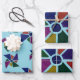 Das ist ein schönes Muster eines wirbeligen Ventilators für ein farbenfrohes Design auf Geschenkpapier. Dieses Papier ist ideal für Kinder - groß, kühn und lebendig. Es wäre auch ein gutes Weihnachtspapier.